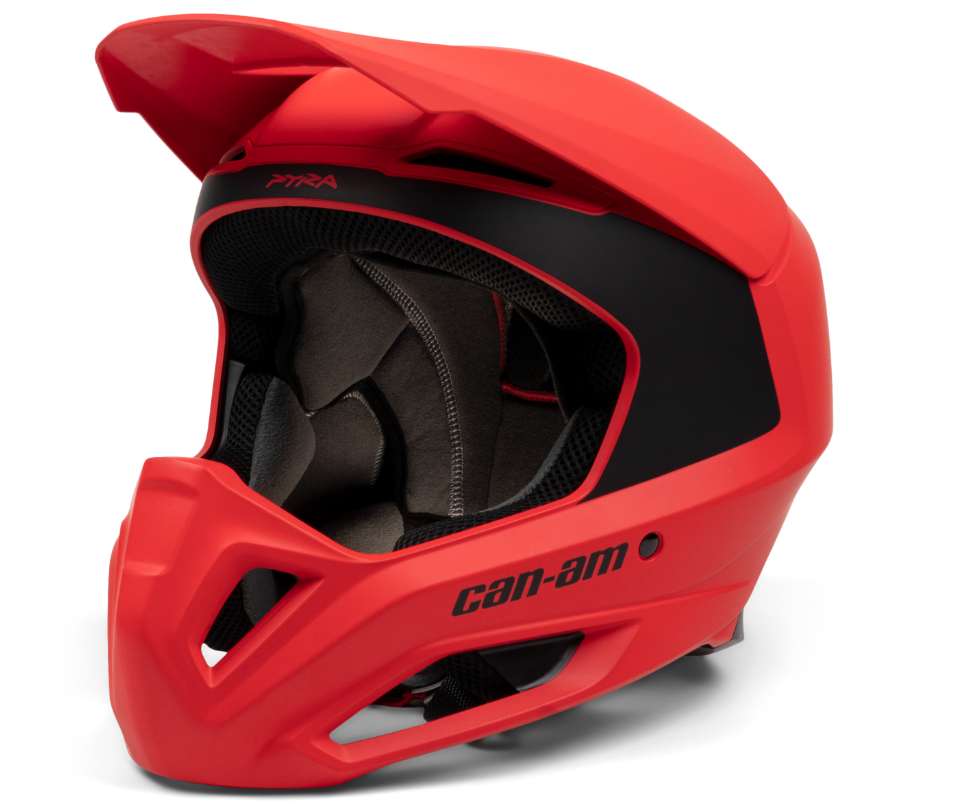 Cuando se trata de seguridad, la cobertura es clave. El casco Can-Am Pyra está diseñado para proteger su cabeza sin importar lo que el camino le depare. Este casco con certificación DOT/ECE 2206 cuenta con una carcasa de compuesto plástico avanzado y un sistema de absorción de impactos rotacional para una mayor protección. Los orificios de ventilación Hi-max en la parte delantera y trasera le permiten maximizar el flujo de aire fresco, mientras que un deflector de viento extraíble mantiene el clima frío y el barro fuera de sus ojos dependiendo de las condiciones. Después de un día de alta intensidad en el ATV, el forro que absorbe la humedad es extraíble y lavable para que te sientas fresco cada vez que te equipes, y la ligera correa de la barbilla en doble D garantiza un ajuste perfecto.