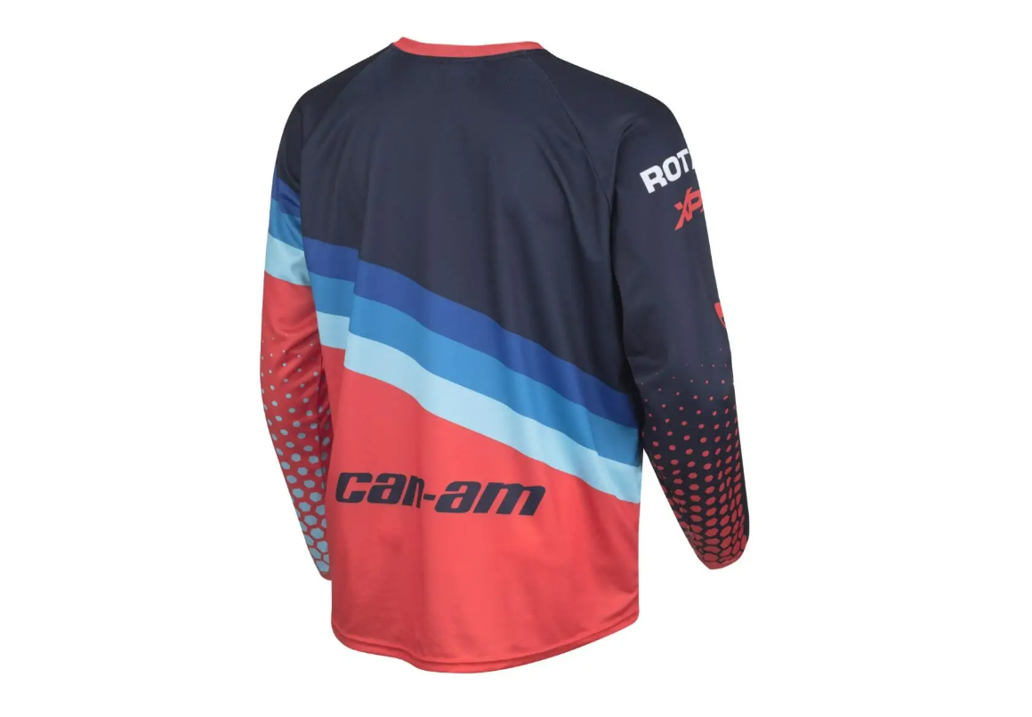 Los días calurosos en los senderos requieren ropa transpirable. Te presentamos el maillot Can-Am Emblem, que es tan agradable al tacto como a la vista gracias a su confección íntegramente en poliéster y a su tejido de secado rápido que absorbe la humedad para garantizar que te mantengas fresco y seco. El maillot incorpora paneles de malla bajo los brazos para una mayor transpirabilidad, así como la marca Can-Am en una impresión sublimada en el pecho y en cada manga.