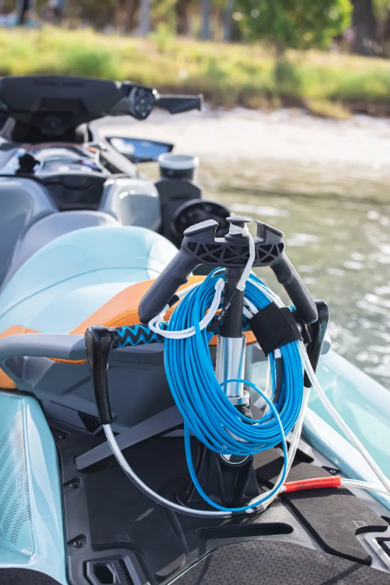 Fije el Ski Pylon retráctil LinQ a su moto acuática para disfrutar de una aventura acuática más segura y agradable. En lugar de arrastrar la cuerda por el agua o desordenar su embarcación, este Ski Pylon libera espacio y mantiene la cuerda fuera del agua para que no quede atrapada en los escombros. Incluso incorpora asas de agarre para observadores y se aparta de su camino cuando no lo está utilizando. Los viajes más seguros empiezan aquí. De serie en los modelos WAKE PRO (a partir de 2018) y WAKE 170.